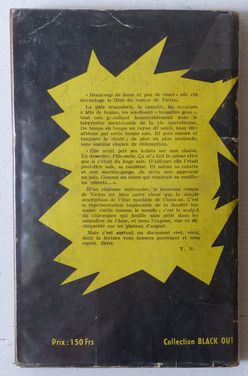 D'un réalisme outrancier, le nouveau roman de Victus est bien autre chose que la simple description de l'état morbide de l'homme. C'est la représentation implacable de la dualité humaine vieille comme le monde; c'est le scalpel du chirurgien qui fouille sans pitié dans les méandres de l'âme, et nous l'expose, nue et déchiquetée sur un plateau d'argent'