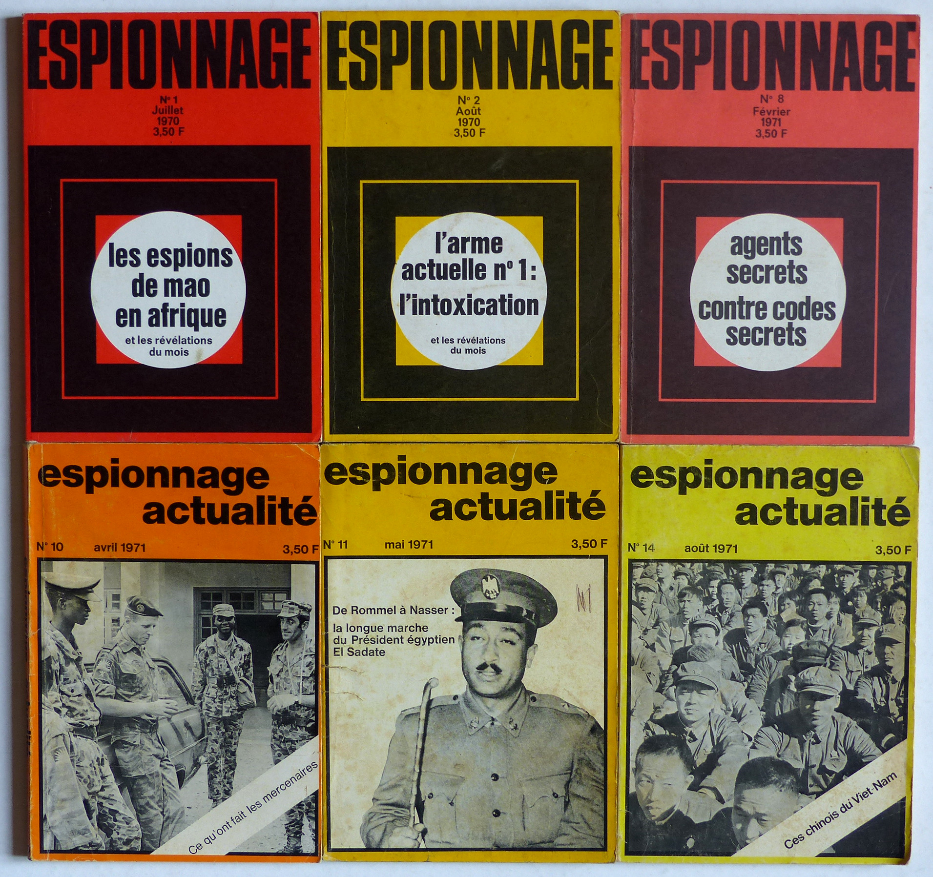 N°1/2/8/10/11/14 (parus de juillet 1970 à août 1971) de cette revue qui proposait des études documentaires sur la guerre secrète et subversive, des nouvelles, et des critiques de livres et de films