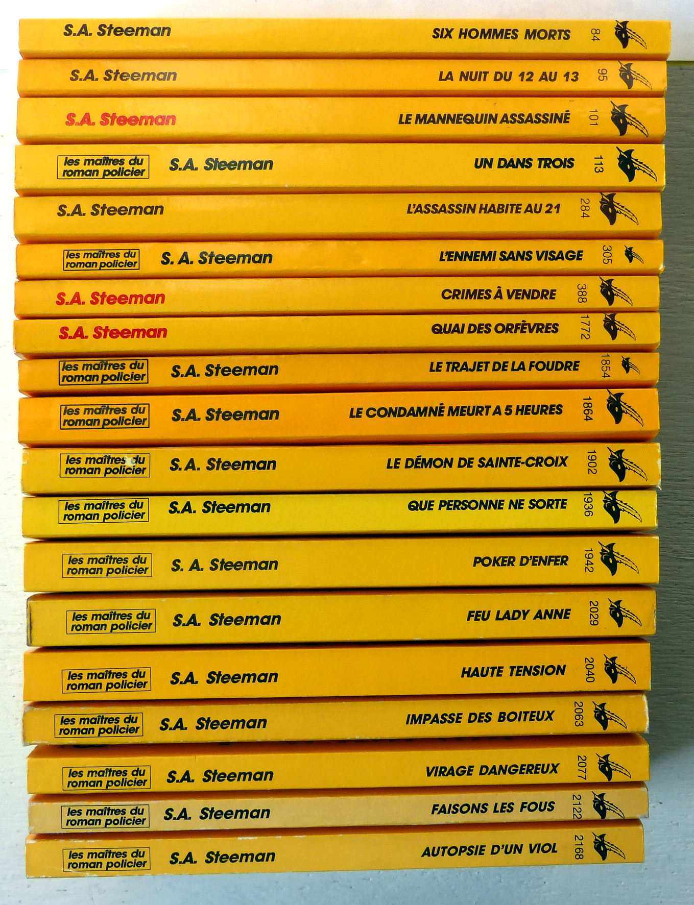 14 romans de Steeman, déjà parus au Masque ou chez d'autres éditeurs. N°84-95-101-113-284-305-388-1772-1854-1864-1902-1936-2029-2063 (le détail des titres est visible sur les photos associées à l'annonce)