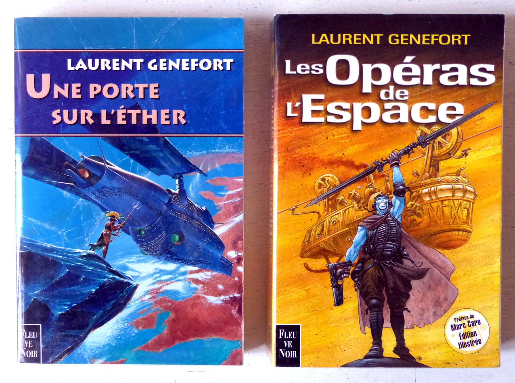 Ensemble de 2 volumes: Les opéras de l'espace (réédition, dans une version revue et corrigée, de deux romans parus en 1996 dans la collection 'Anticipation', n°1993 et 1994: 'La compagnie des fous' et 'Les voies du ciel'), Une porte sur l'éther (inédit)