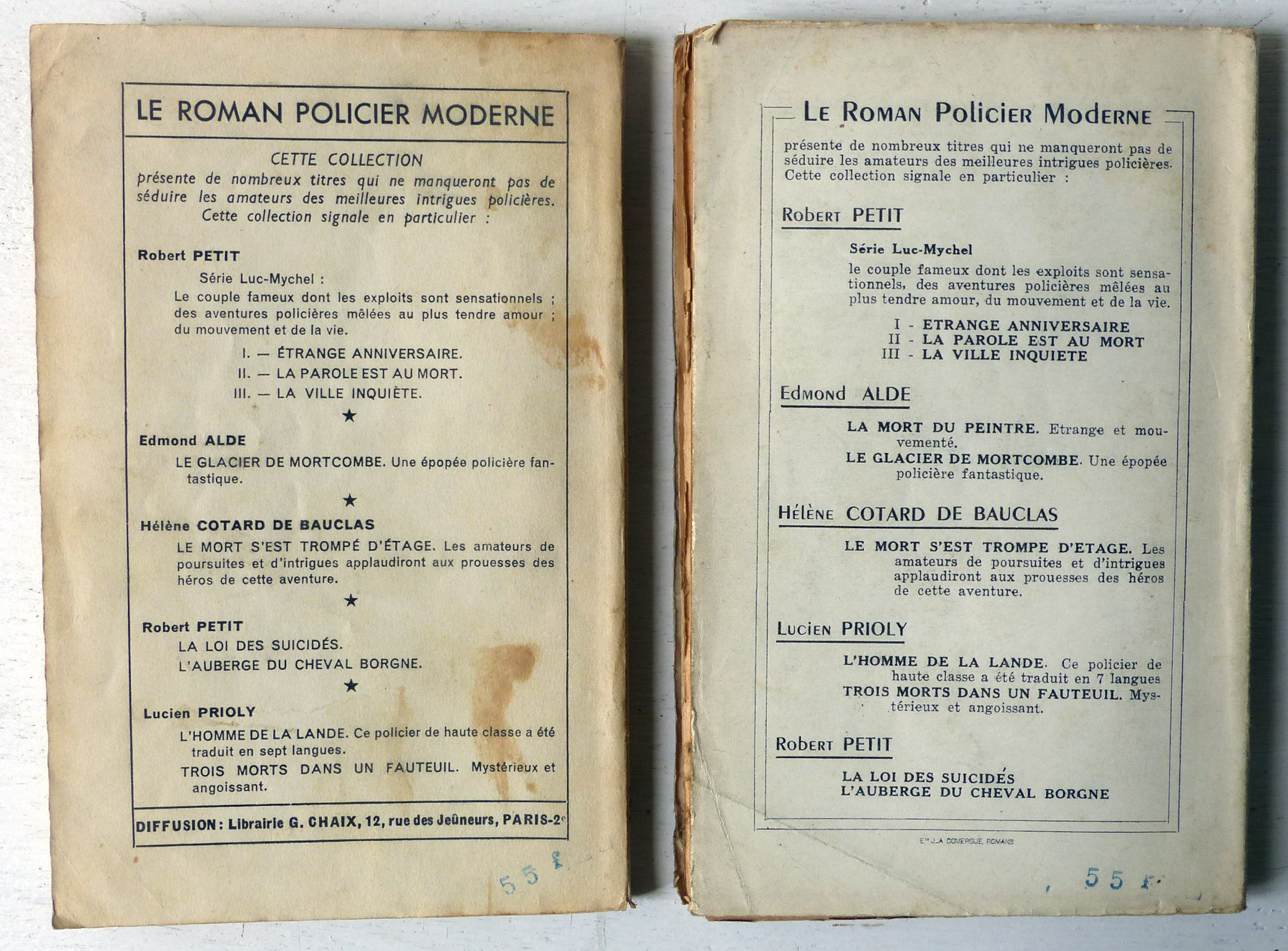 Le mort s'est trompé d'étage, par Hélène de Bauclas; Etrange anniversaire (série Luc Mychel, 1), par Robert Petit; La mort du peintre, par Edmond Aldé