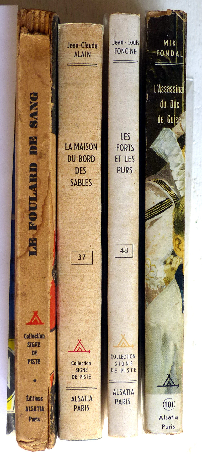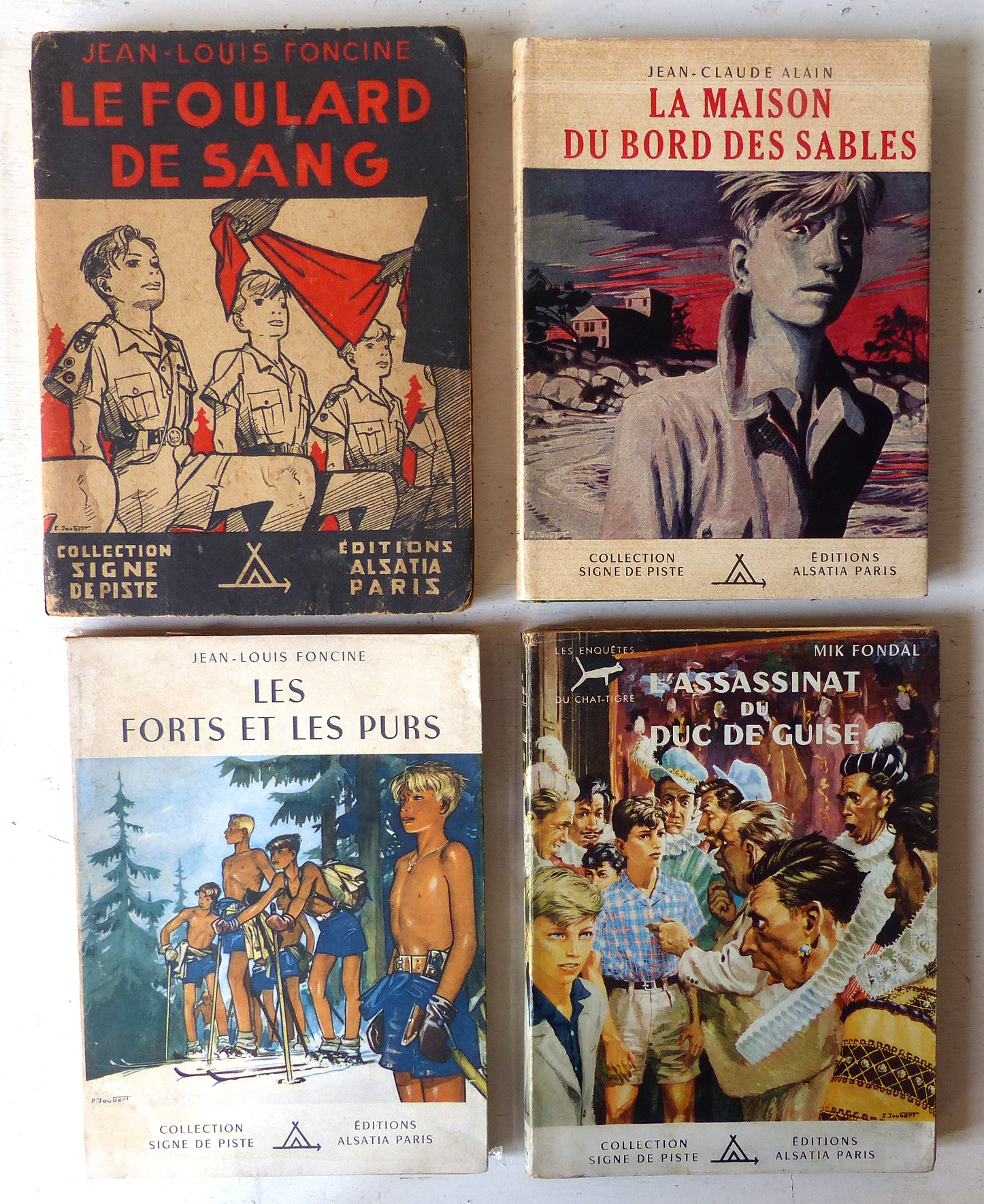 Ensemble de 4 romans scouts: N°22 (32 dans la nouvelle numérotation de 1950)/ Le foulard de sang, par Jean-Louis Foncine; 37/ La maison du bord des sables, par Jean-Claude Alain; 48/ Les forts et les purs, par Jean-Louis Foncine; 101/ L'assassinat du duc de Guise (Les enquêtes du Chat-Tigre n°3), par Mik Fondal.