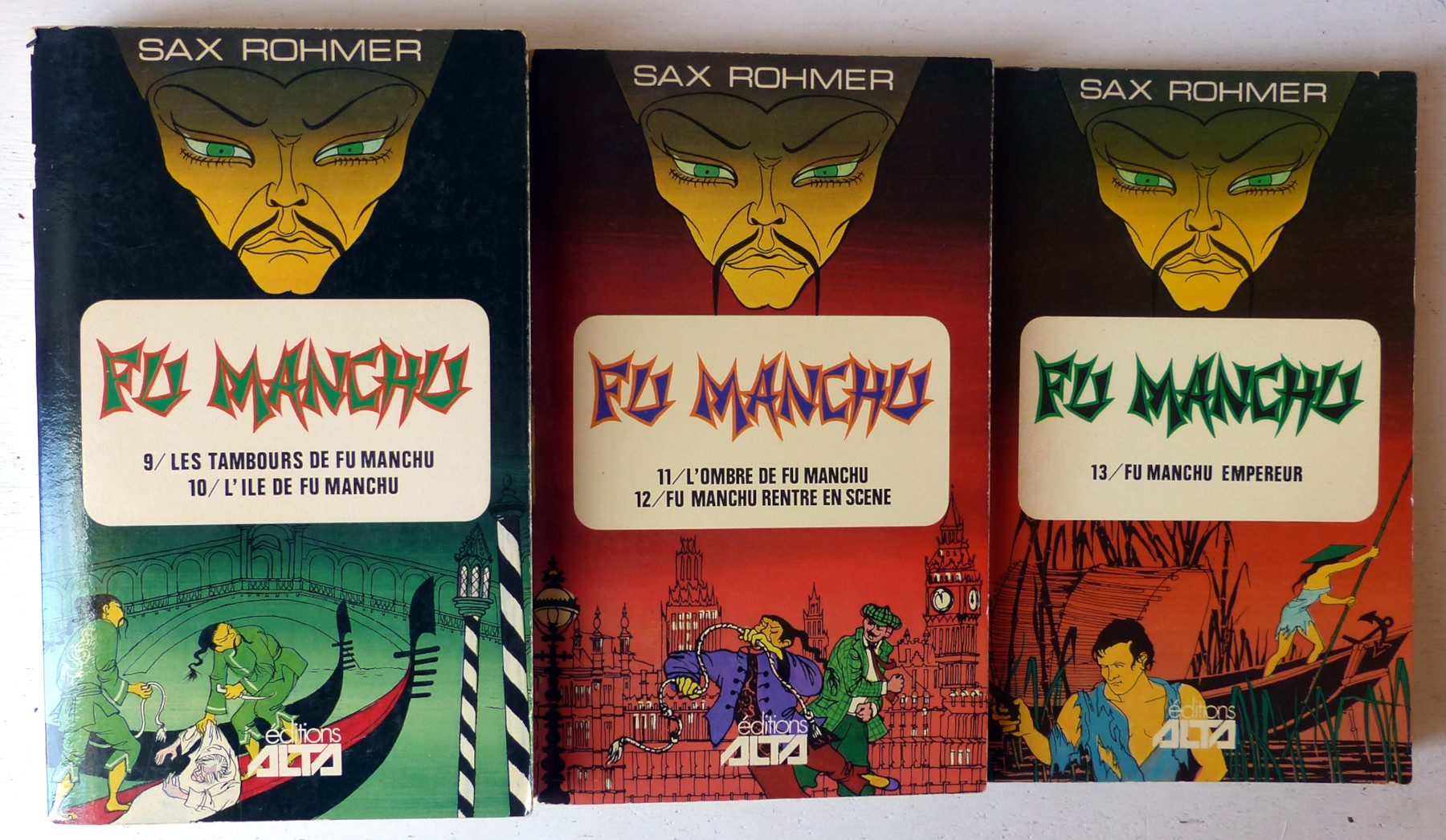 Ces 7 volumes contiennent l'intégralité du cycle Fu Manchu: 13 romans et 3 nouvelles, ainsi que des documents annexes (préfaces par Francis Lacassin, bibliographie et filmographie, et un texte de Sax Rohmer sur la naissance de son personnage).