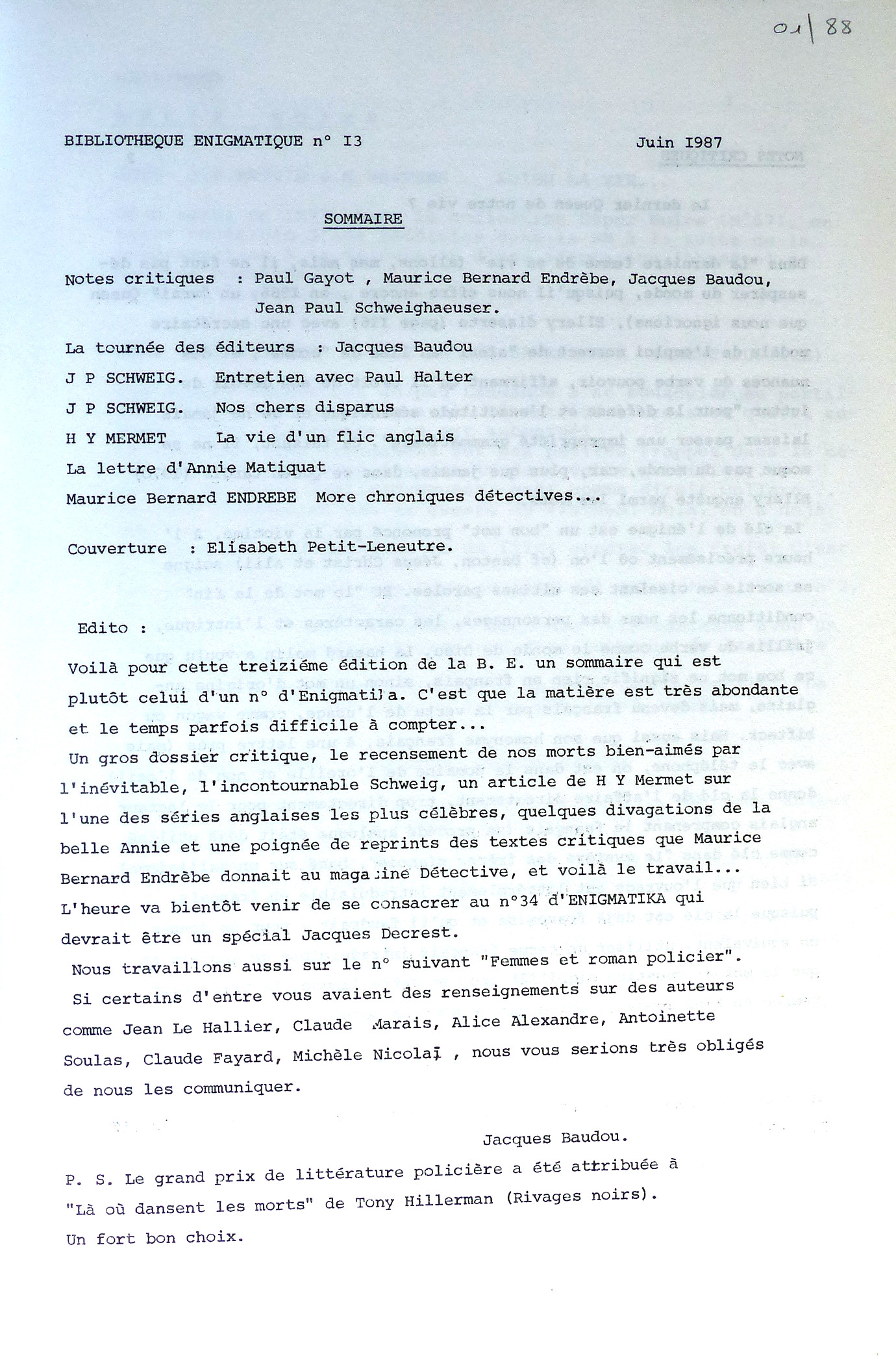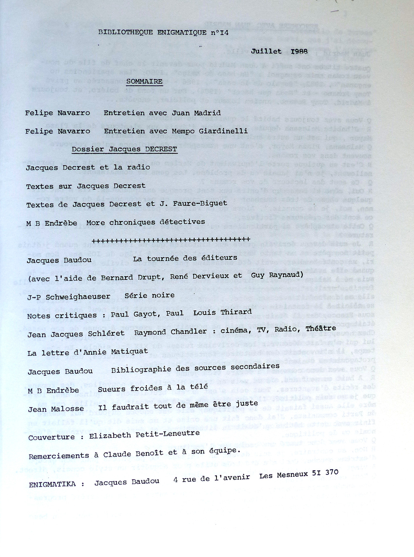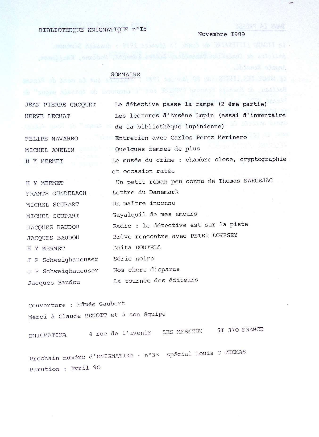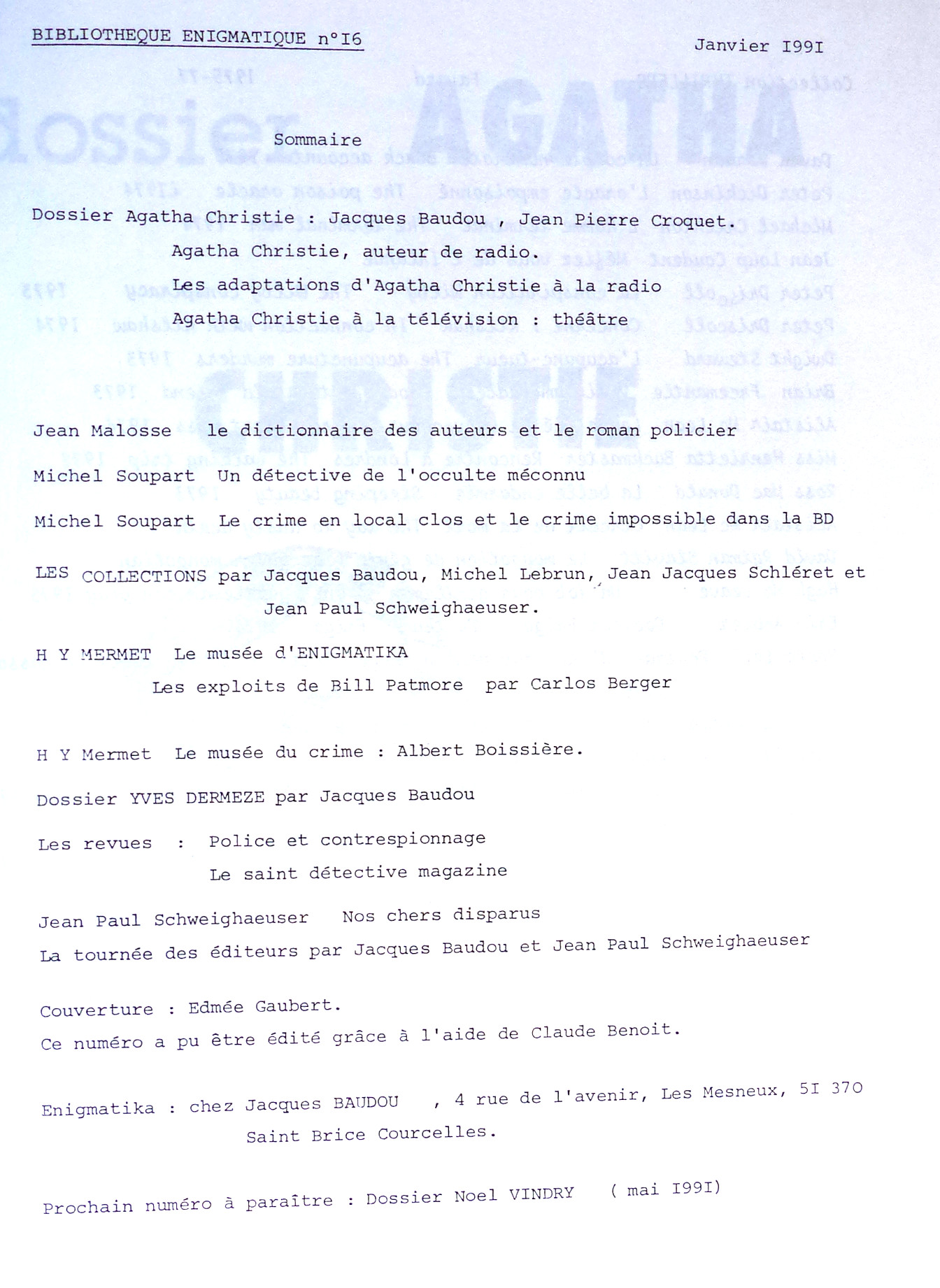 N°10 ('La mort aux dents' par J. Barine, recueil de 4 textes); 13; 14 (dossier Jacques Decrest et divers); 15; 16 (dossier Agatha Christie et divers). --Les sommaires des n° sont visibles sur les photos associées à l'annonce.