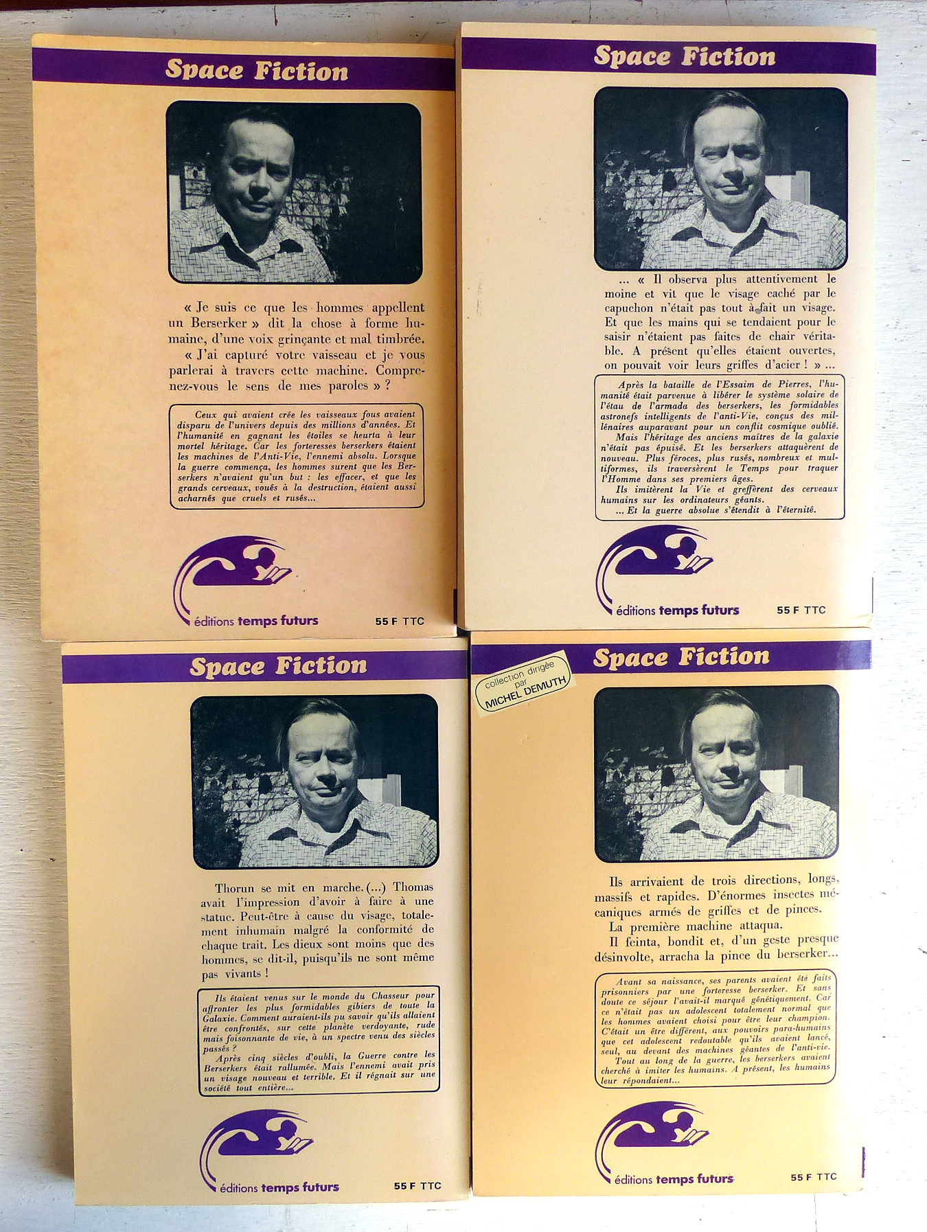 Ensemble des 4 recueils de nouvelles et romans parus dans la collection Space Fiction: 1/ La guerre des Berserkers (recueil de 9 nouvelles); 2/ L'assassin Berserker (recueil de 8 nouvelles); 3/ La planète Berserker(roman); 4/ L'homme Berserker (roman).