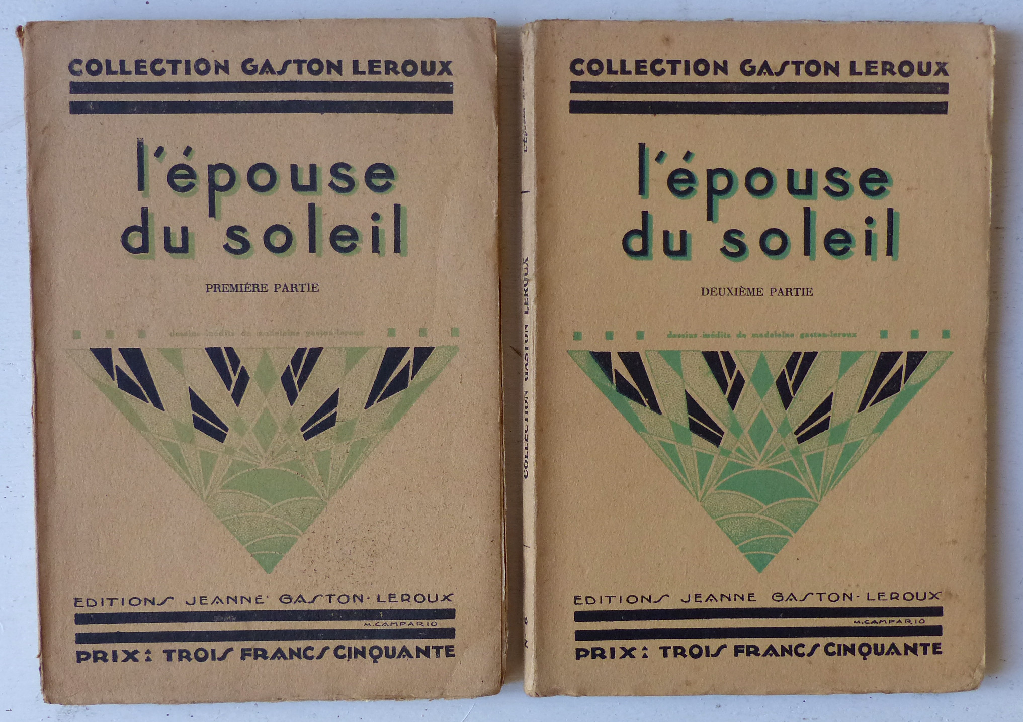 2 volumes brochés (15x22 cm), couvertures beiges ornées d'un motif Art déco (par M. Campario), illustrations intérieures (par Madeleine Gaston-Leroux), en bon état général