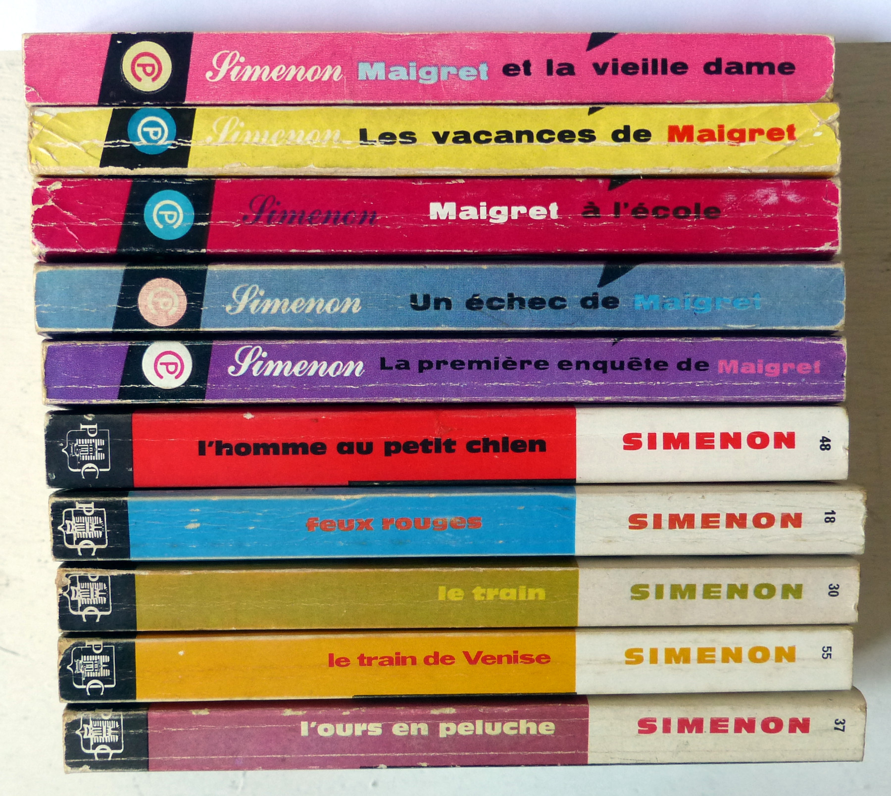 Ensemble de 5 romans du cycle du commissaire Maigret: Maigret et la vieille dame, Les vacances de Maigret, Maigret à l'école, Un échec de Maigret,La première enquête de Maigret; + 5 romans hors cycle: L'homme au petit chien, Feux rouges, Le train, Le train de Venise, L'ours en peluche.