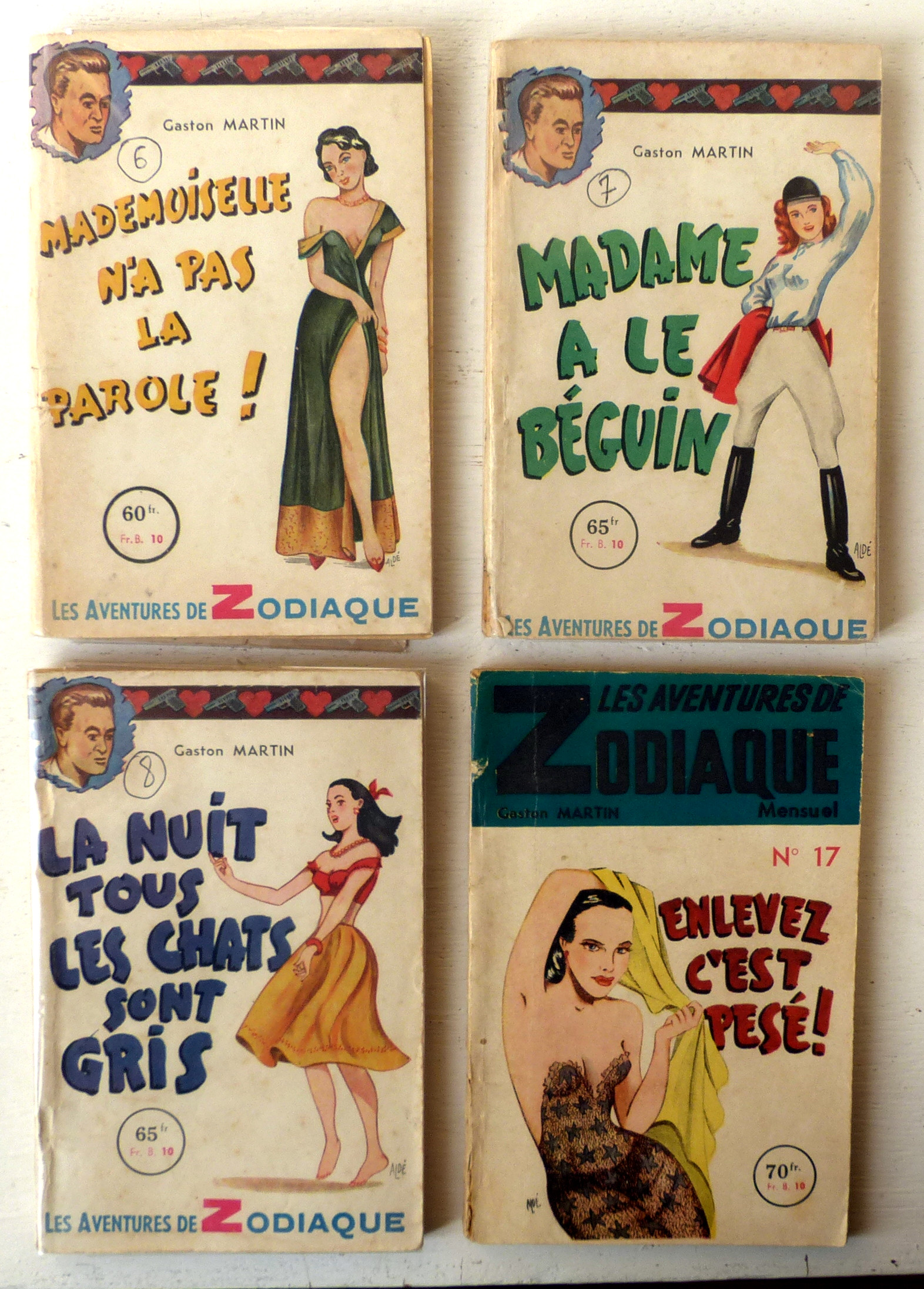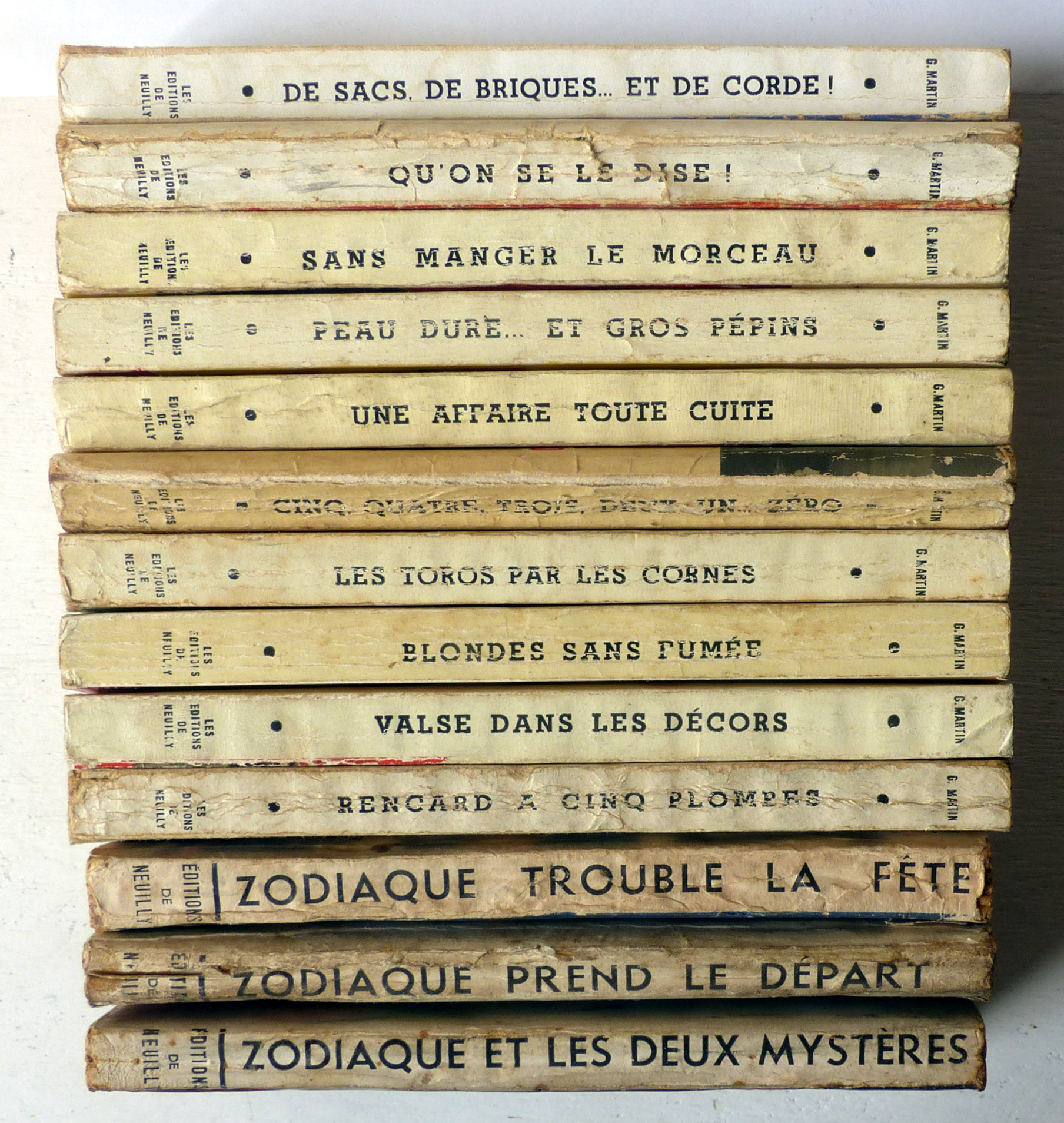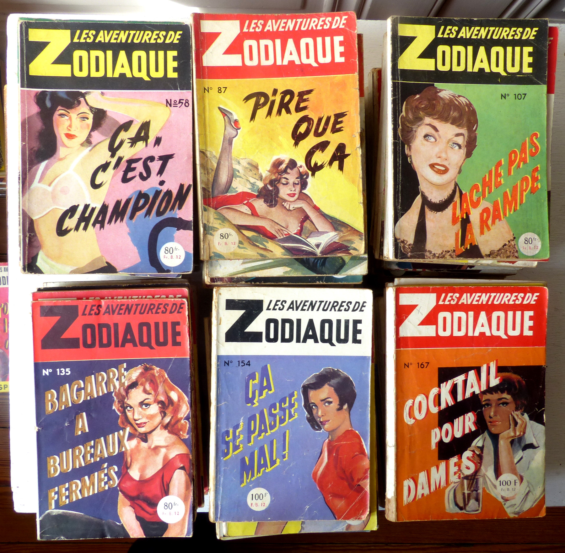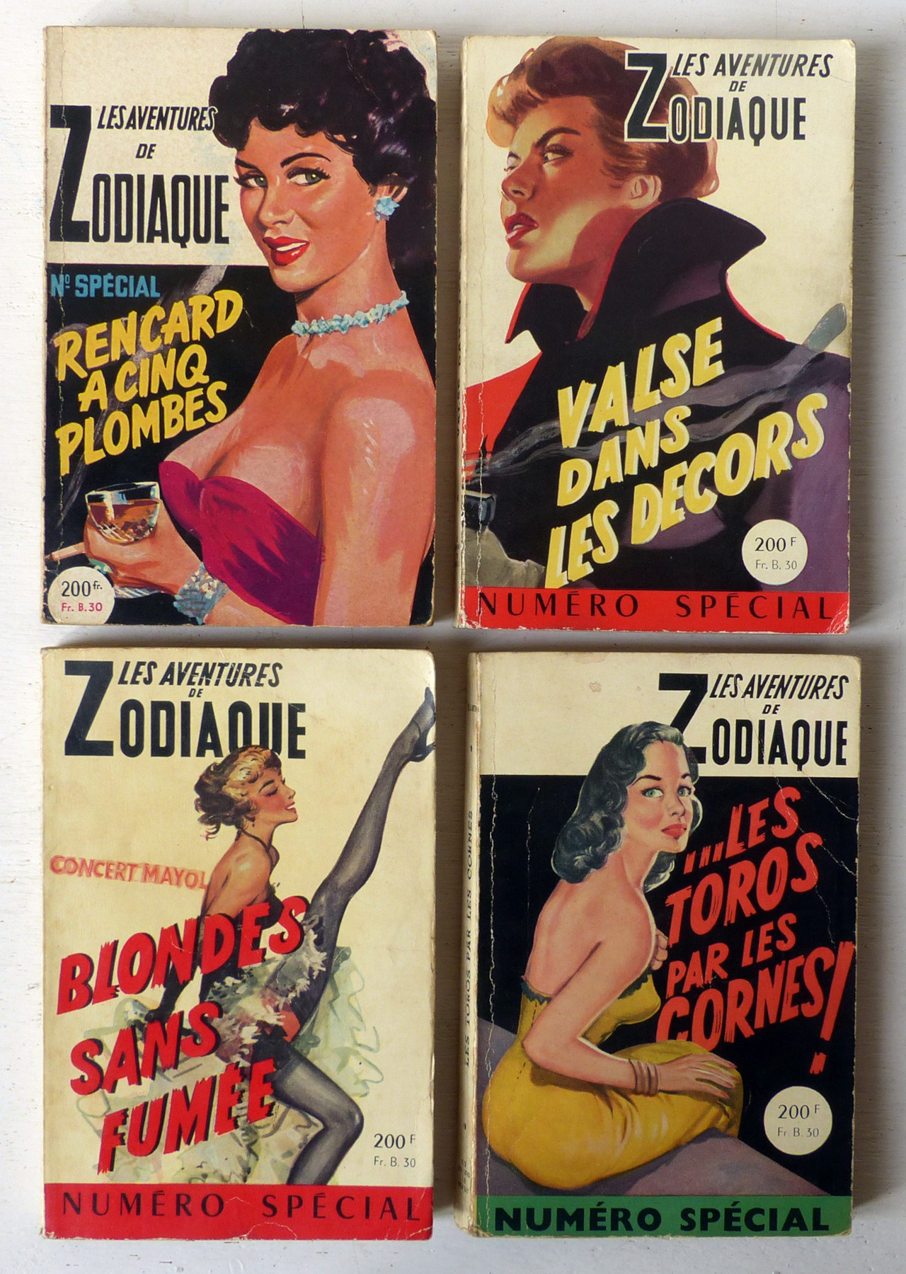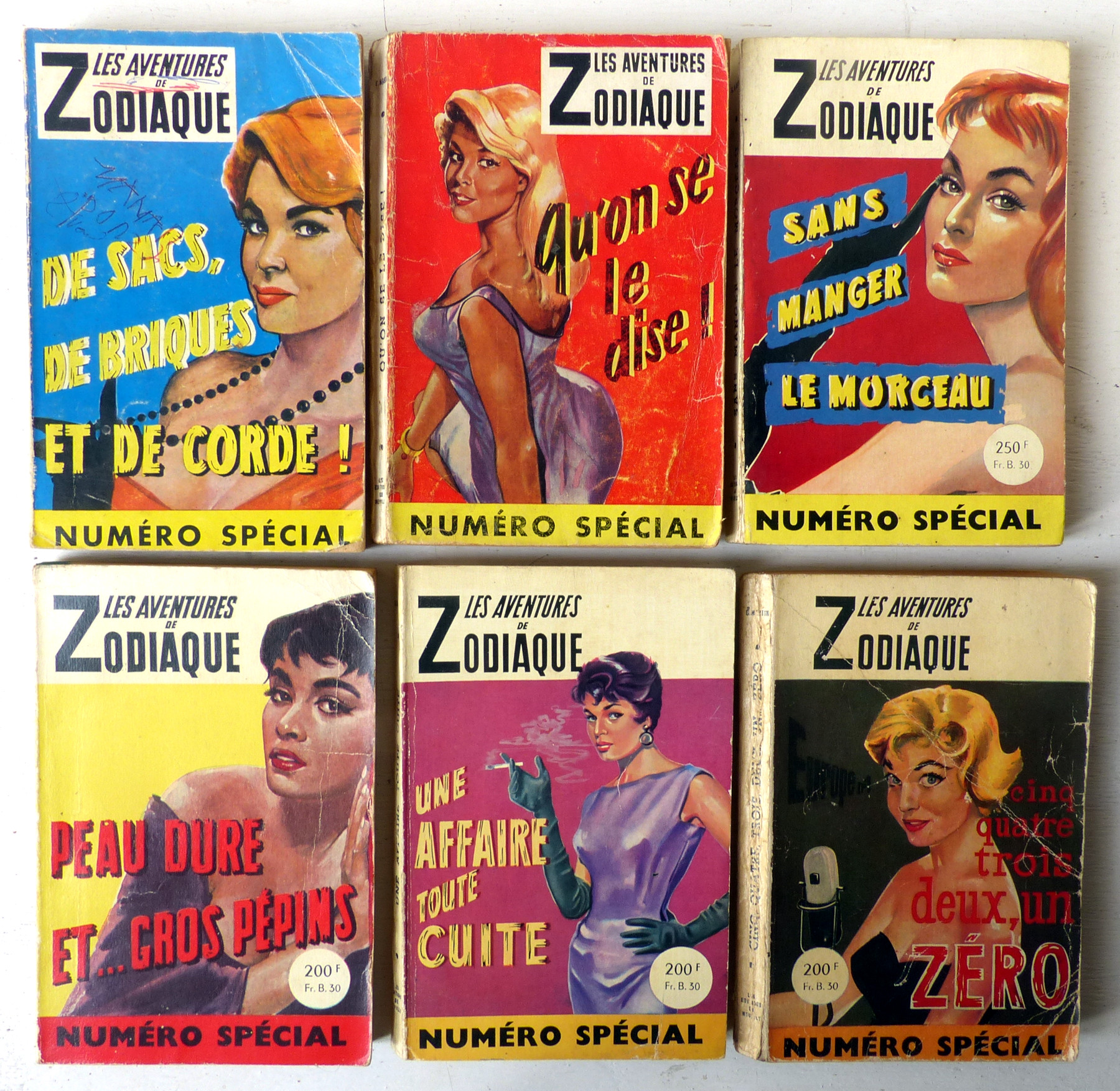 Ensemble de 90 n°, soit plus de la moitié de cette série (il manque les n°1 à 5-9 à 16-18 à 22-24-25-28-30-31-34 à 39-42-46-57-49 à 52-54-55-56-59-60-64-65-67-73-74-76 à 79-88-91-106-109-110-112 à 120-128-129-143-144-145-147-155-156-164-165-168 pour que la série soit complète) + 10 n° spéciaux: n°1-5-6-7-10-11-13-14-15-16; + 3 recueils de 2 n°: Zodiaque et les deux mystères, Zodiaque prend le départ, Zodiaque trouble la fête.
